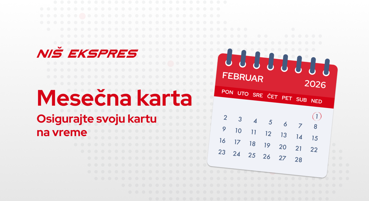 Prodaja mesečnih karata za FEBRUAR 2026. godine počinje u ponedeljak 26.01.2026. godine.
