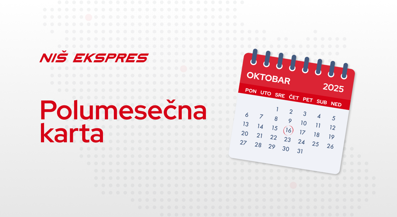 Prodaja mesečnih karata za oktobar 2025. godine počinje u četvrtak 25.09.2025.godine. Period važenja standardne mesečne karte za oktobar je od 01.10.2025. do 31.10.2025.